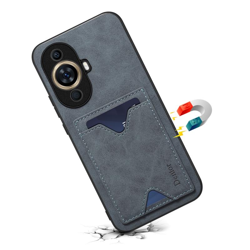Θήκη κινητού τηλεφώνου Huawei nova 11 Denior PU με υποδοχή για κάρτες (Μπλε) (Γκρι)