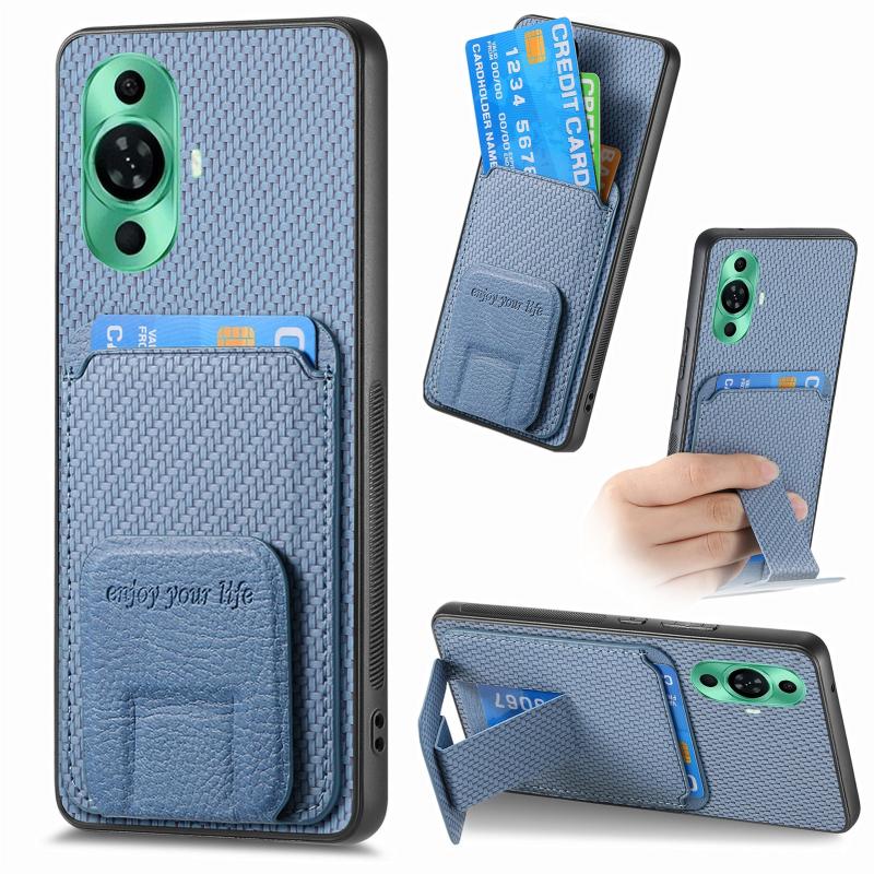 For Huawei Nova 11 Pro 4G Carbon Fiber Card Bag Fold Stand Phone Case(Blue)