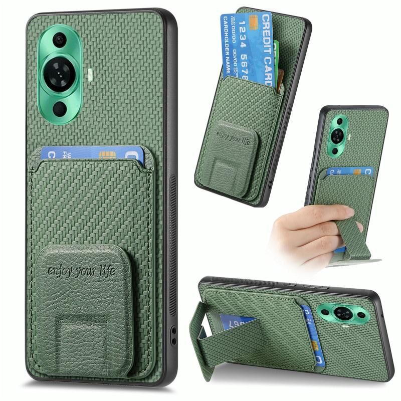 Θήκη τηλεφώνου για Huawei Nova 11 Pro 4G από ανθρακονήματα με κάρτες και βάση στήριξης (Μπλε)