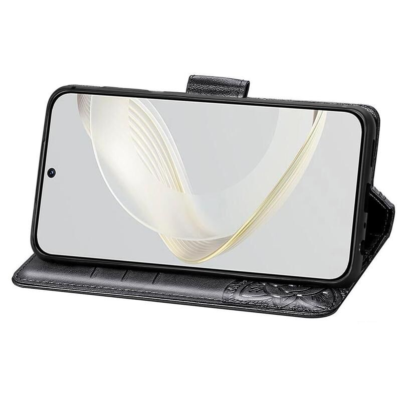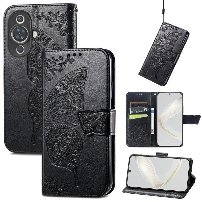 Θήκη τηλεφώνου από δέρμα με ανάγλυφο σχέδιο πεταλούδας και λουλουδιών για Huawei Nova 11 Pro (Μαύρο)