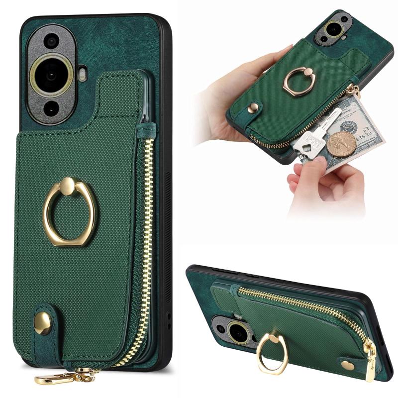 Θήκη Huawei nova 11 Pro Δερμάτινη με Δαχτυλίδι & Φερμουάρ (Πράσινο)