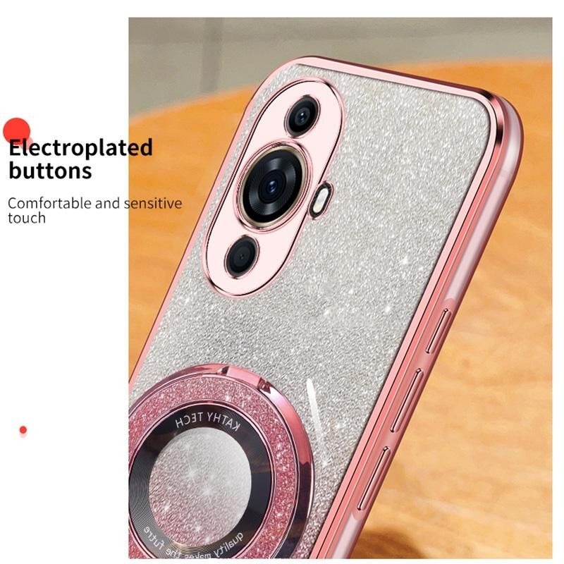 Για Huawei nova 11 Pro Επιμεταλλωμένο διαβάθμιση Glitter στρογγυλό κάτοχος TPU τηλέφωνο υπόθεση (ροζ)