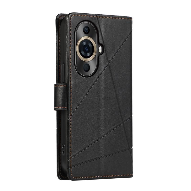 Θήκη τηλεφώνου Huawei nova 11 Pro από γνήσιο δέρμα PU με ανάγλυφη υφή και λεπτομέρειες γραμμής (Μαύρο)