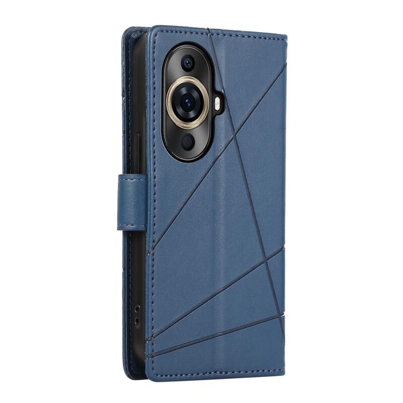Θήκη τηλεφώνου Huawei nova 11 Pro από γνήσιο δέρμα PU με ανάγλυφη υφή και λεπτομέρειες γραμμής (Μπλε)