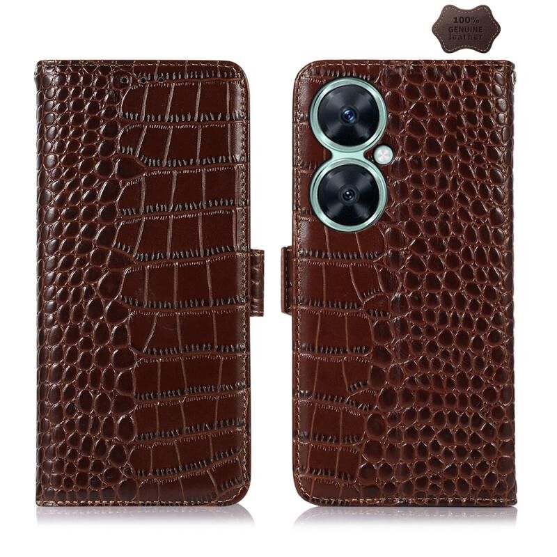 Θήκη τηλεφώνου από δέρμα αγελάδας Top Layer Crocodile για Huawei Nova 11i / Enjoy 60 Pro (Μαύρο)