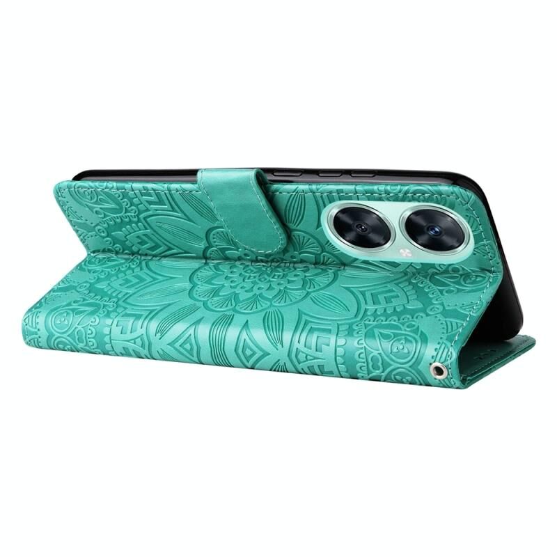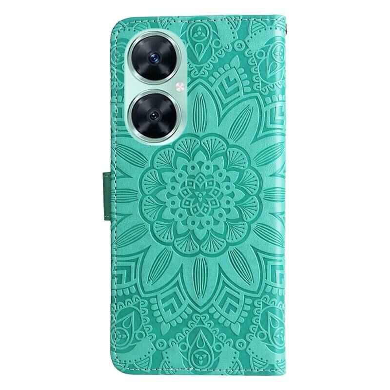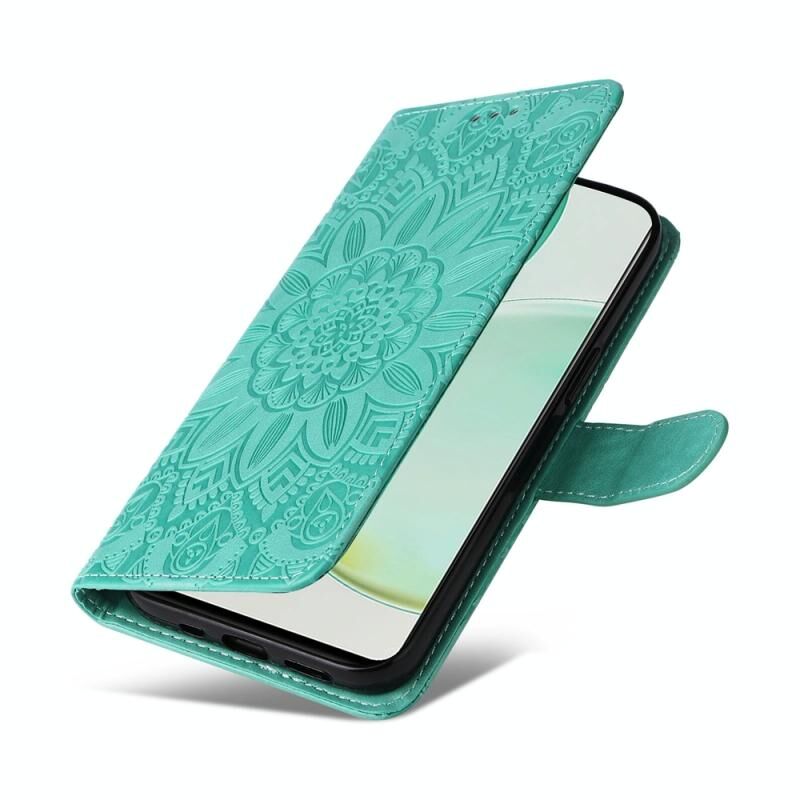 Για Huawei nova 11i / Maimang 20 5G / Enjoy 60 Pro ανάγλυφο ηλιοτρόπιο δερμάτινη θήκη τηλεφώνου (πράσινο)
