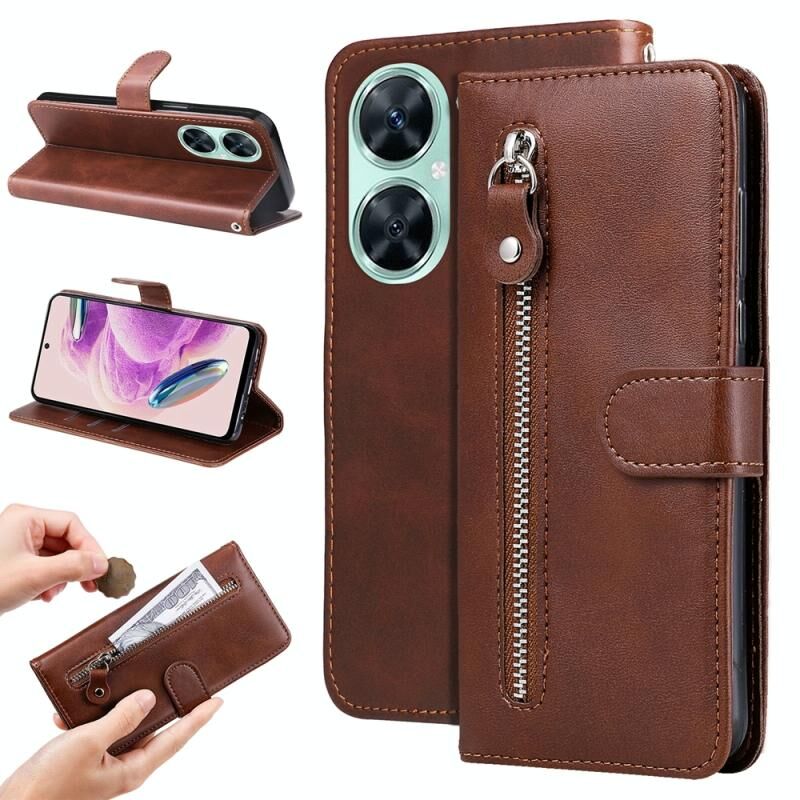 Για Huawei nova 11i / Maimang 20 5G / Enjoy 60 Pro Μόδα Calf υφή φερμουάρ δερμάτινη θήκη τηλεφώνου (Καφέ)