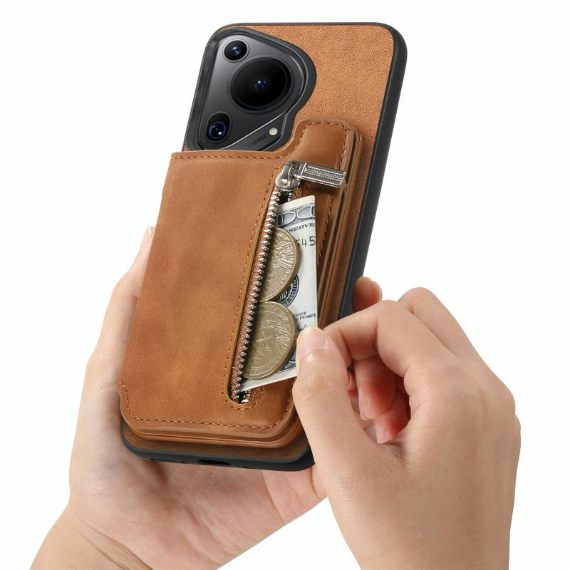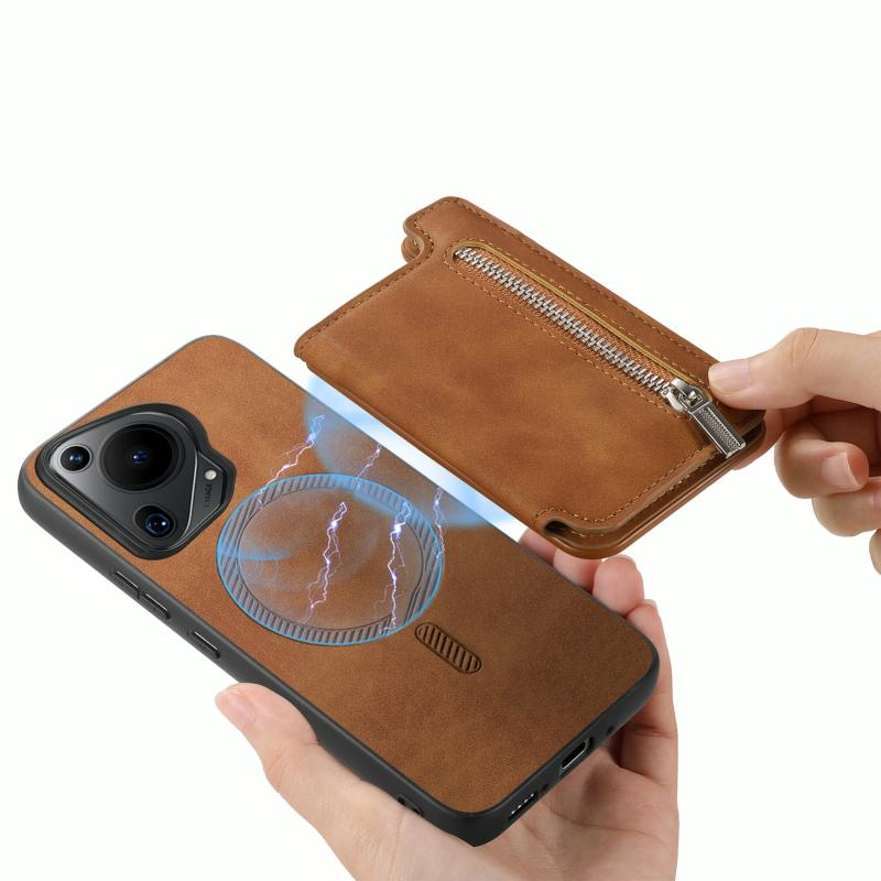 Για Huawei nova 12 / 13 Θήκη Πορτοφόλι MagSafe με Φερμουάρ και Κάρτες (Καφέ)