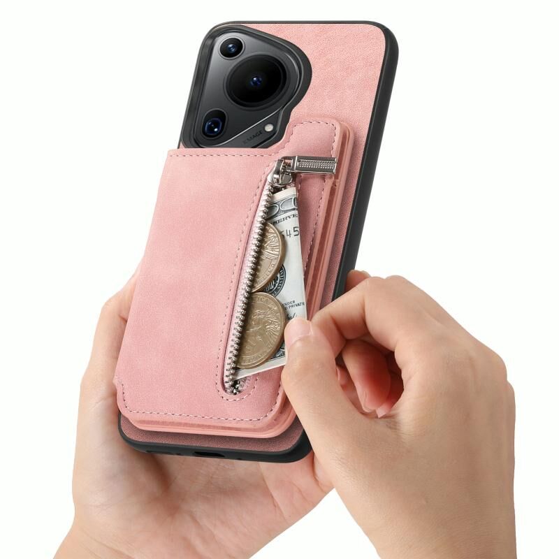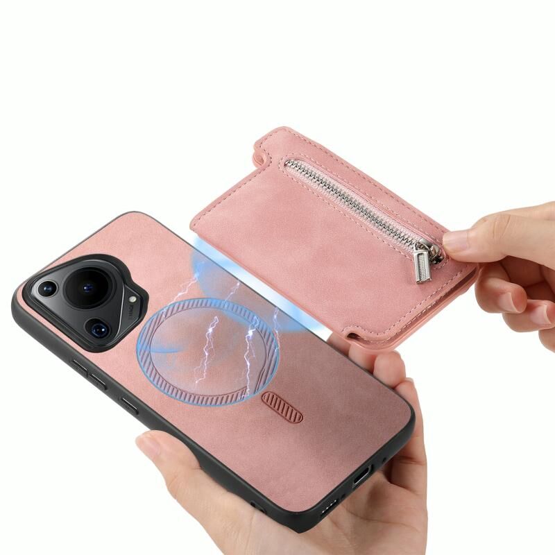 Για Huawei nova 12 / 13 Θήκη Πορτοφόλι MagSafe με Φερμουάρ και Κάρτες (Ροζ)