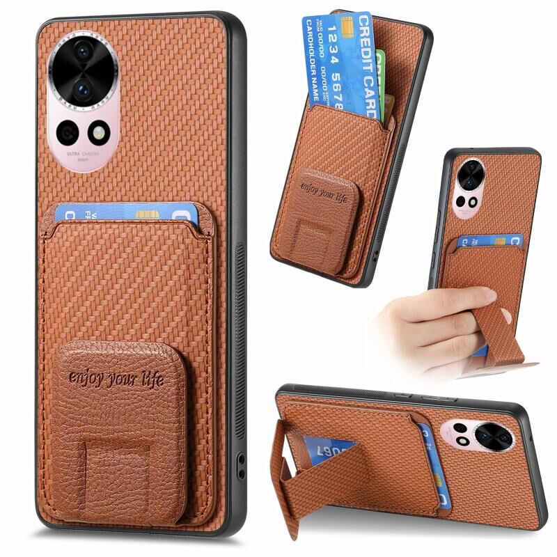 Για Huawei Nova 12 5G Carbon Fiber κάρτα τσάντα τσάντα Fold Stand υπόθεση τηλεφώνου (καφέ)