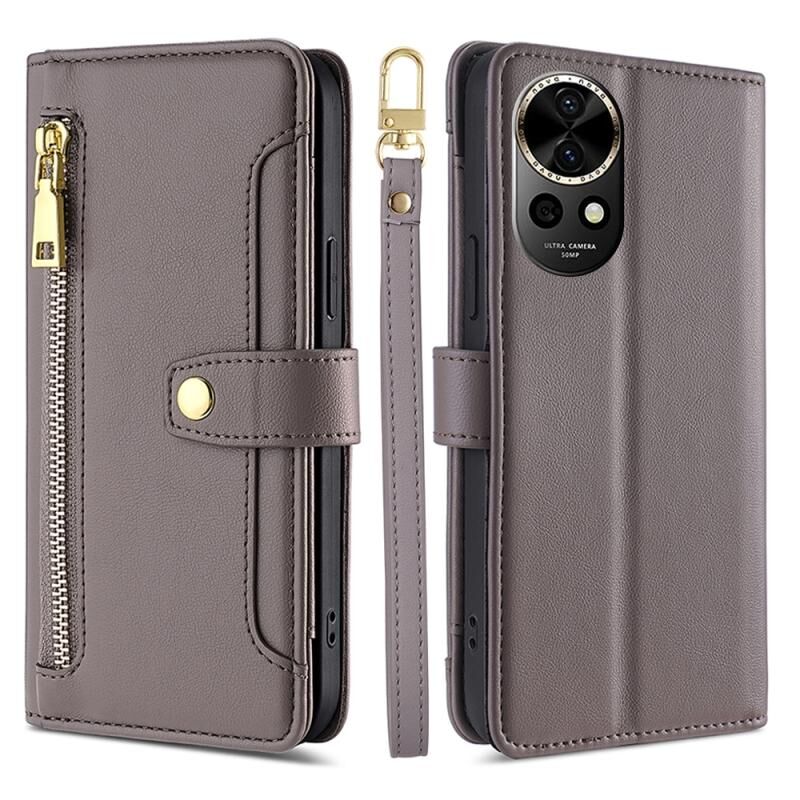 Για Huawei nova 12 5G Sheep Texture Cross-body φερμουάρ πορτοφόλι δερμάτινη θήκη τηλεφώνου (γκρι)