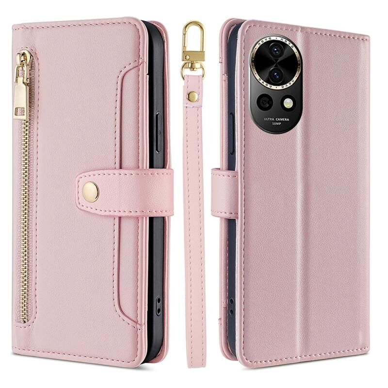 Για Huawei nova 12 5G Sheep Texture Cross-body φερμουάρ πορτοφόλι δερμάτινη θήκη τηλεφώνου (ροζ)