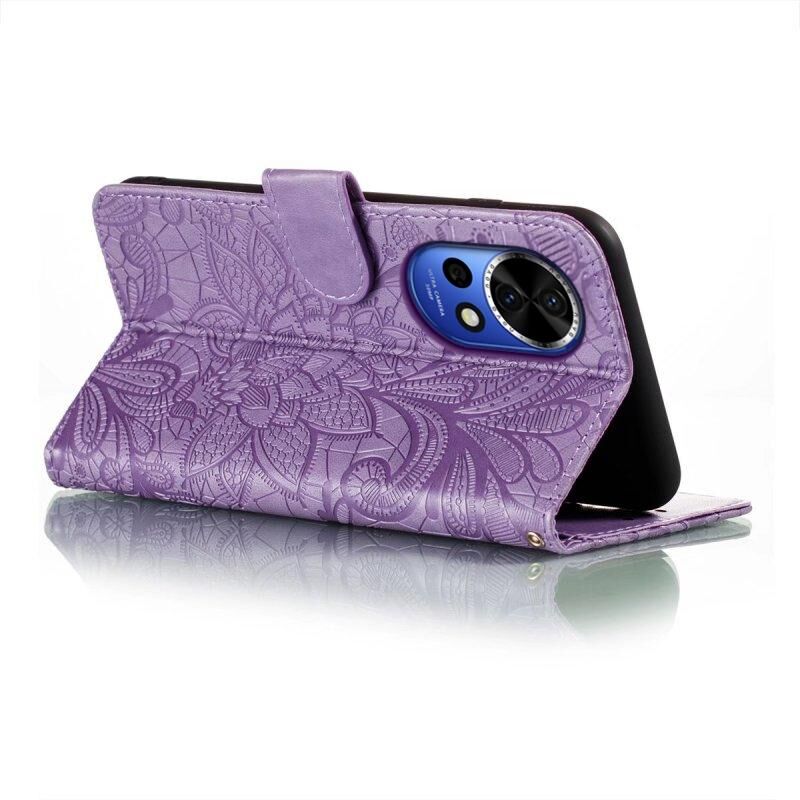 Για Huawei Nova 12 Δαντέλα λουλούδι ανάγλυφο Flip υπόθεση τηλεφώνου δέρμα (μωβ)