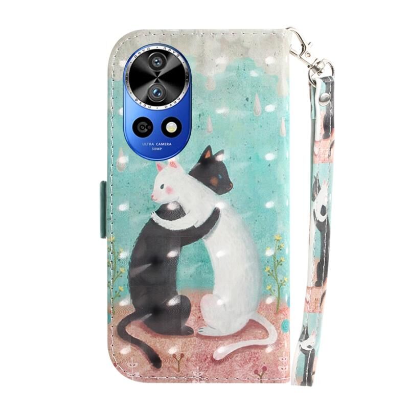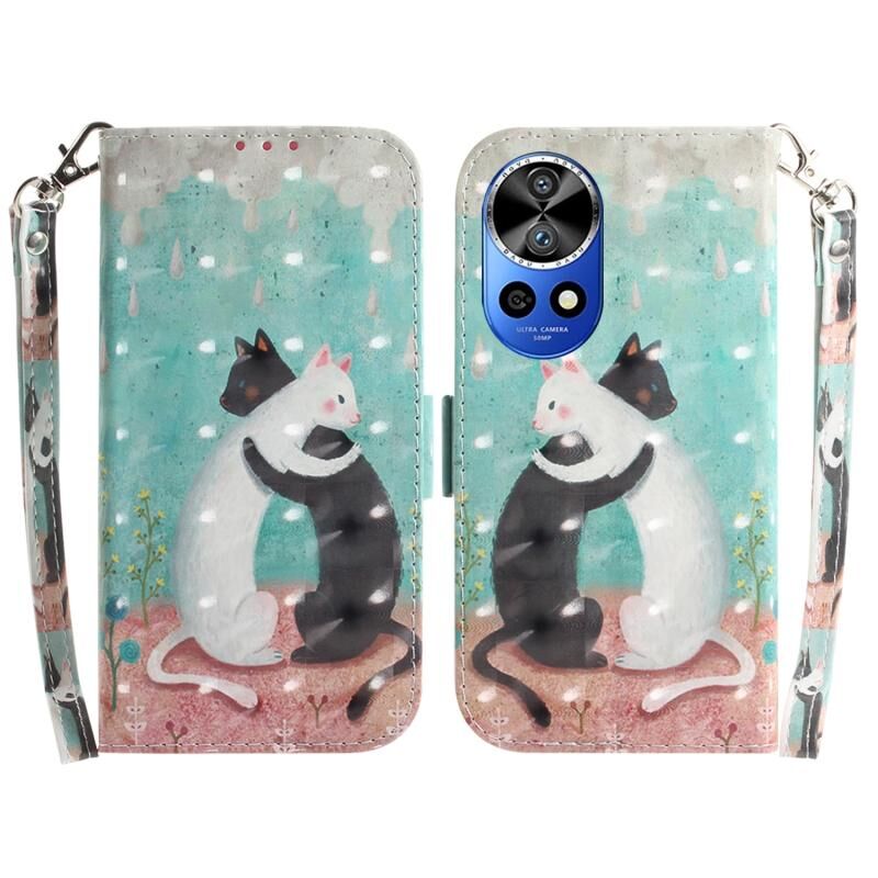 Θήκη τηλεφώνου δερμάτινη, οριζόντια, αναδιπλούμενη, με έγχρωμο 3D σχέδιο για Huawei nova 12 Pro (Μαύρη Λευκή Γάτα)
