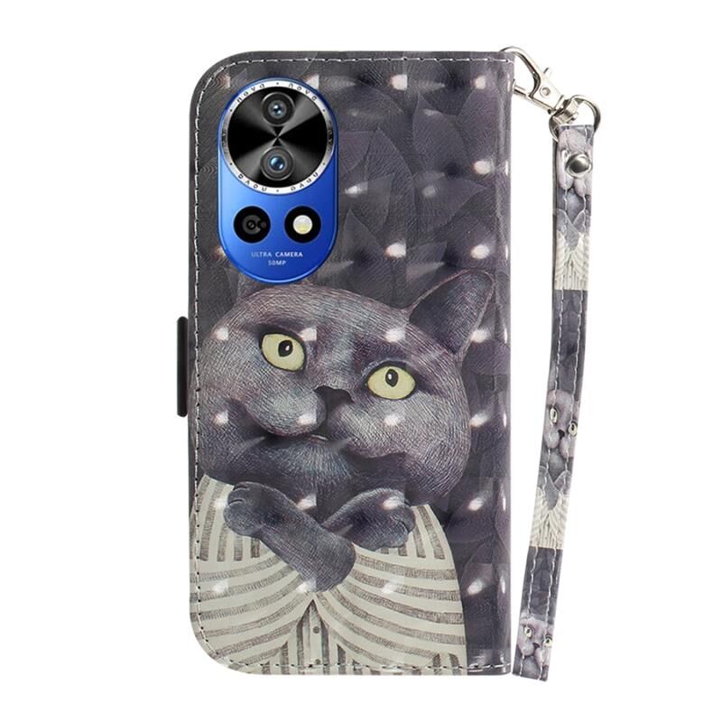 Θήκη τηλεφώνου δερμάτινη, οριζόντια, αναδιπλούμενη, 3D με χρώματα για Huawei nova 12 Pro (Αγκαλιά Γάτας)