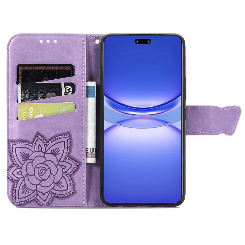 For Huawei Nova 12 Pro Butterfly Love Flower Embossed Leather Phone Case(Light Purple)