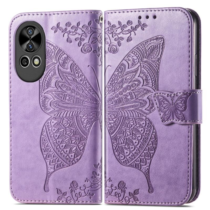 Θήκη τηλεφώνου από δέρμα με ανάγλυφο σχέδιο πεταλούδας και λουλουδιών για Huawei Nova 12 Pro (ανοιχτό μωβ)