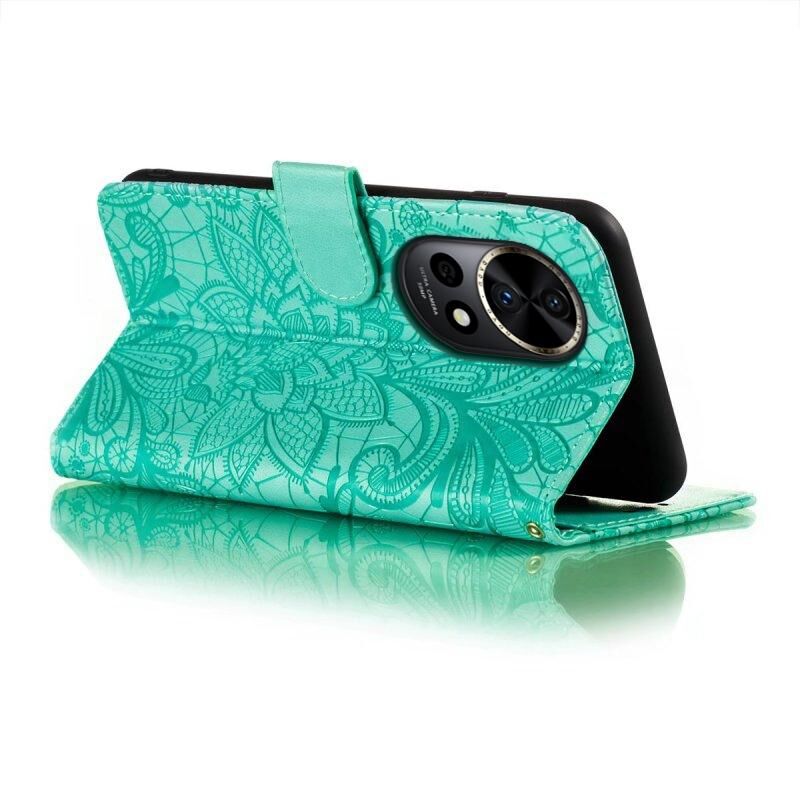 8. Σχεδιασμός με ανάγλυφο λουλούδι από δαντέλα, Η θήκη είναι κατασκευασμένη από προσεκτικά επιλεγμένο δέρμα που της δίνει μια εκλεπτυσμένη και πολυτελή εμφάνιση και αίσθηση.