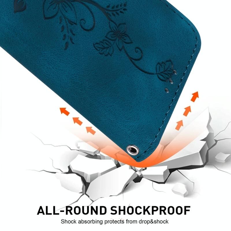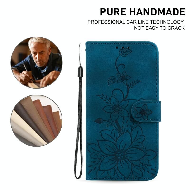 Για Huawei nova 12 Pro Lily ανάγλυφη δερμάτινη θήκη τηλεφώνου (σκούρο μπλε)