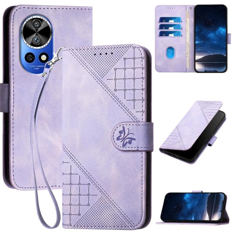 Θήκη τηλεφώνου από δέρμα με ανάγλυφο σχέδιο πλέγματος πεταλούδας για Huawei nova 12 Pro / nova 12 Ultra με κορδόνι (Σκούρο Μπλε)