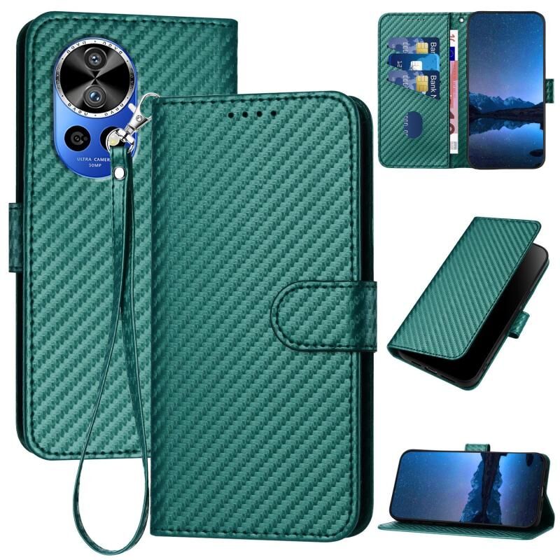Για Huawei nova 12 Pro / nova 12 Ultra YX0070 Carbon Fiber πόρπη δερμάτινη θήκη τηλεφώνου με κορδόνι (Σκούρο πράσινο)