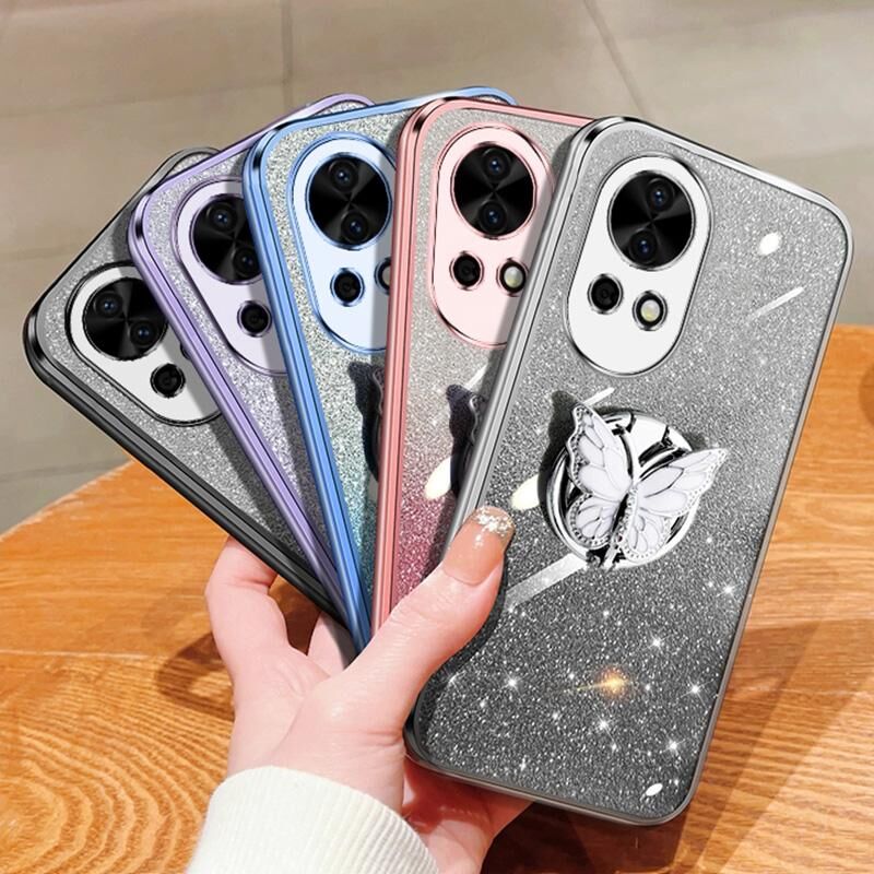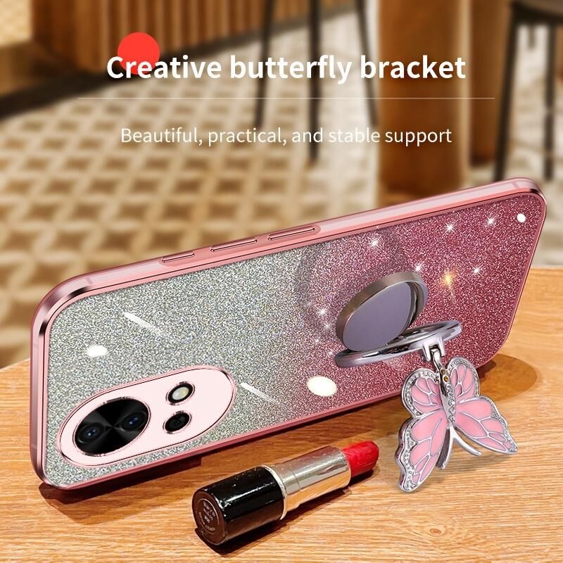 Θήκη κινητού τηλεφώνου Huawei nova 12 Pro Επικαλυμμένη Διαβαθμισμένη Λάμψη Πεταλούδα TPU (Ροζ)