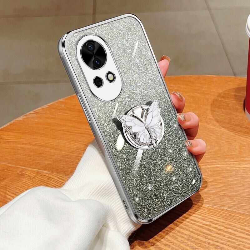 Θήκη κινητού τηλεφώνου Huawei nova 12 Pro Επικαλυμμένη Διαβαθμισμένη Λάμψη Πεταλούδα TPU (Ροζ)