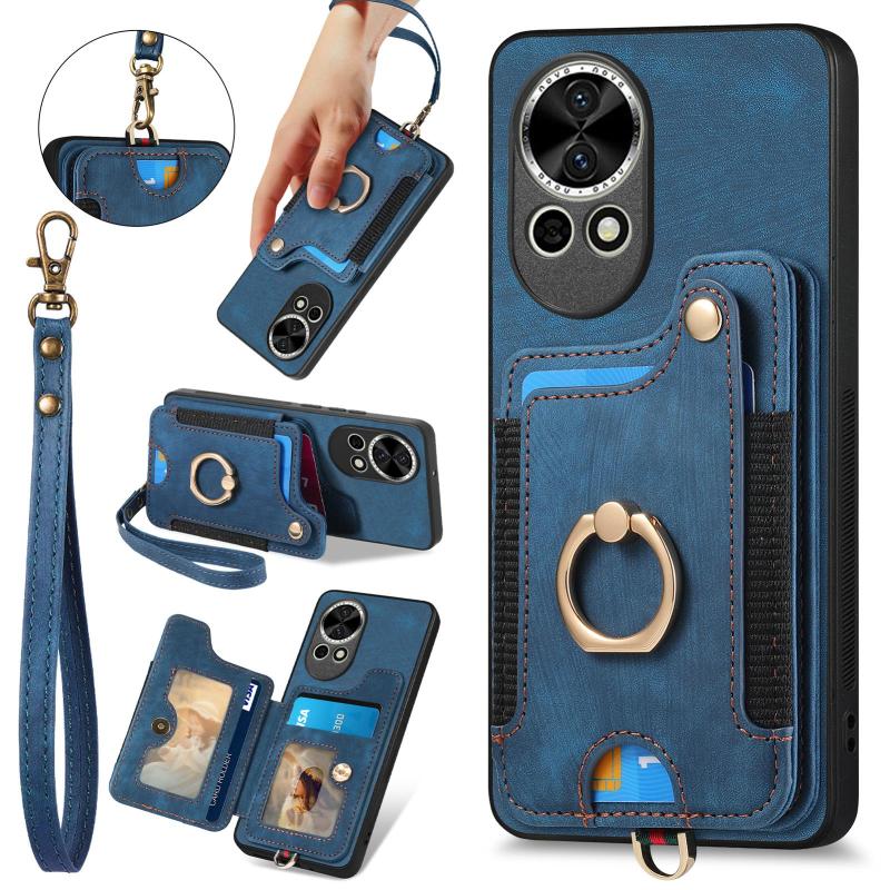 For Huawei nova 12 Pro Retro Skin-feel Ring Multi-card Wallet Phone Case(Blue)