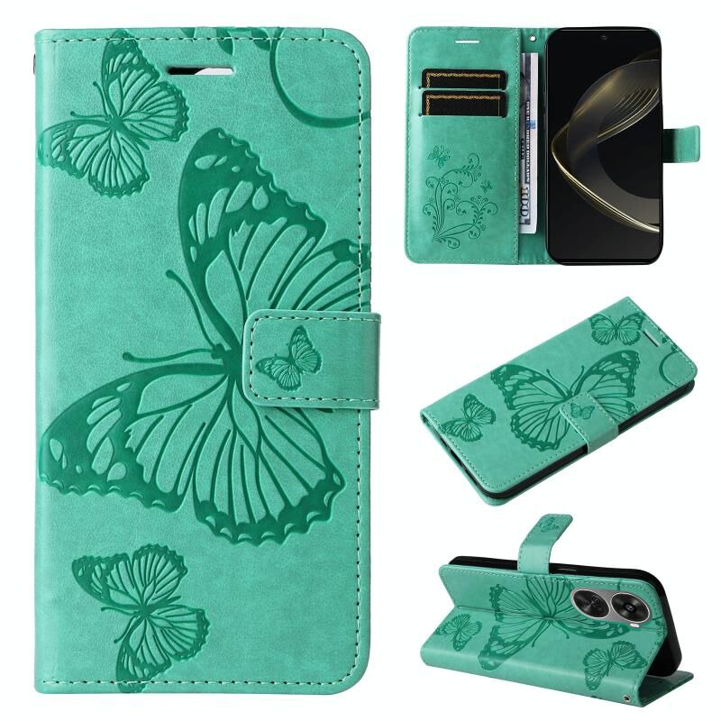 Για Huawei nova 12 SE / nova 11 SE 3D πεταλούδα ανάγλυφο μοτίβο Flip υπόθεση τηλεφώνου δέρμα (πράσινο)