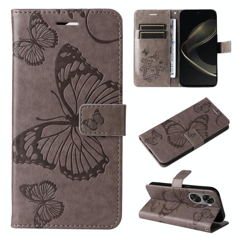 Για Huawei nova 12 SE / nova 11 SE 3D πεταλούδα ανάγλυφο μοτίβο Flip υπόθεση τηλεφώνου δέρμα (γκρι)
