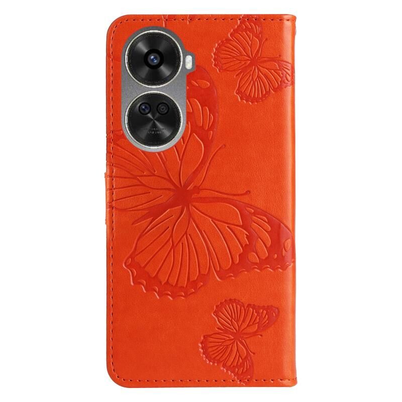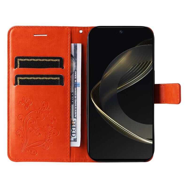 Για Huawei nova 12 SE / nova 11 SE 3D πεταλούδα ανάγλυφο μοτίβο Flip υπόθεση τηλεφώνου δέρμα (πορτοκαλί)