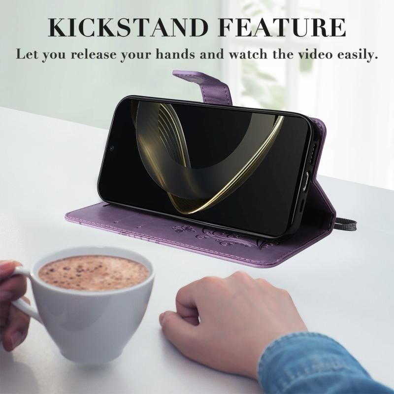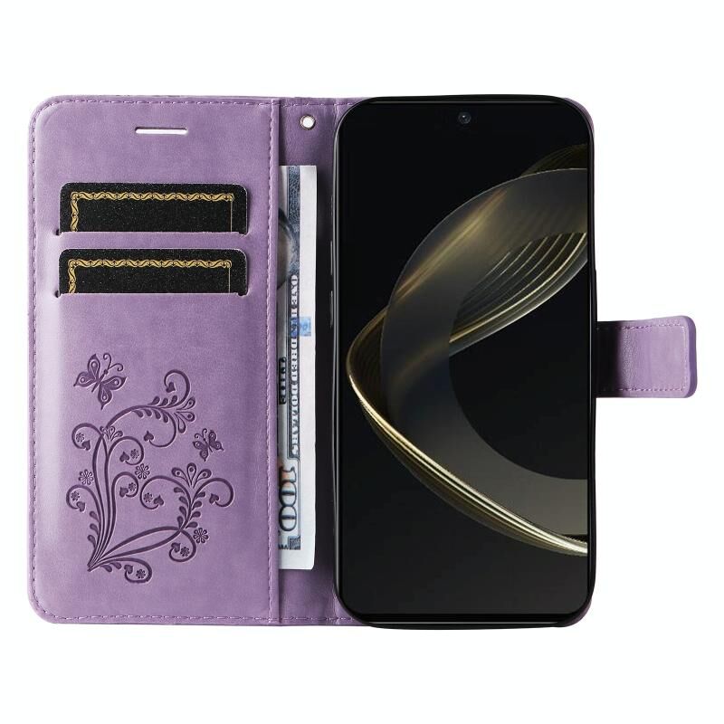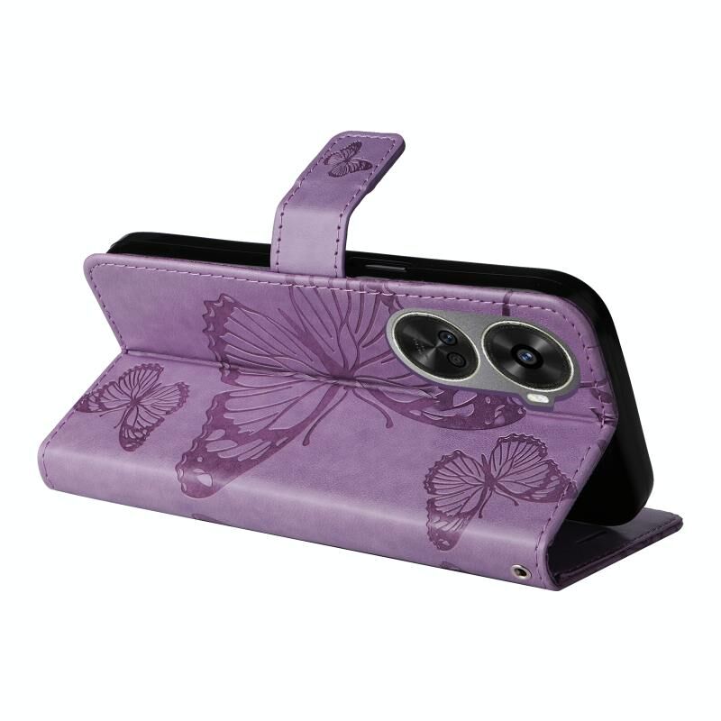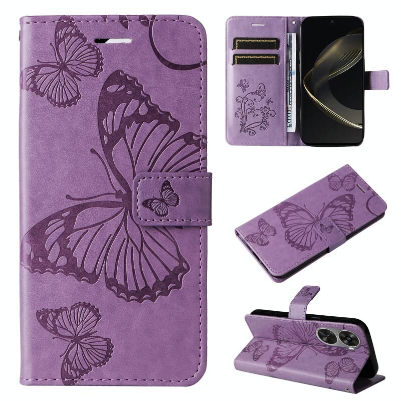Για Huawei nova 12 SE / nova 11 SE 3D πεταλούδα ανάγλυφο μοτίβο Flip υπόθεση τηλεφώνου δέρμα (μωβ)