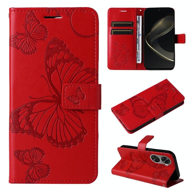 Για Huawei nova 12 SE / nova 11 SE 3D πεταλούδα ανάγλυφο μοτίβο Flip υπόθεση τηλεφώνου δέρμα (κόκκινο)