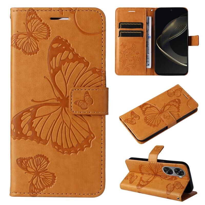 Για Huawei nova 12 SE / nova 11 SE 3D πεταλούδα ανάγλυφο μοτίβο Flip υπόθεση τηλεφώνου δέρμα (κίτρινο)