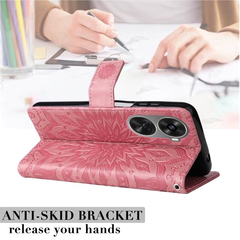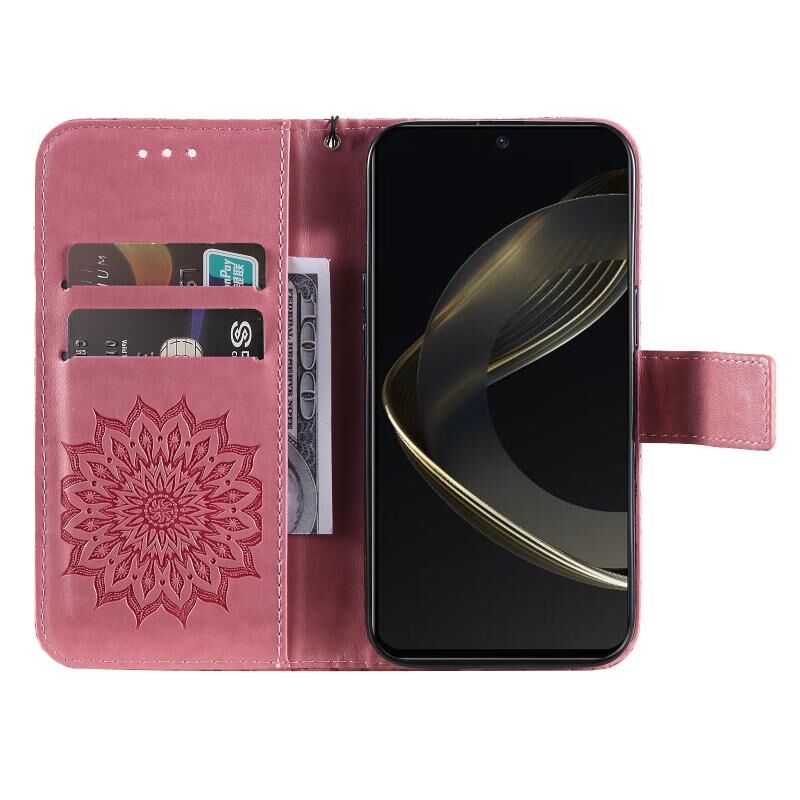 Θήκη τηλεφώνου από δέρμα με σχέδιο ανάγλυφου ηλίανθου για Huawei nova 12 SE / nova 11 SE (Καφέ)