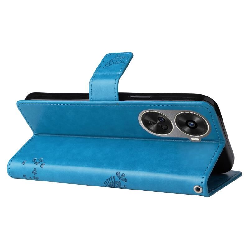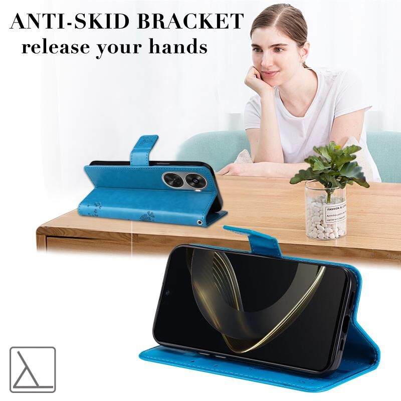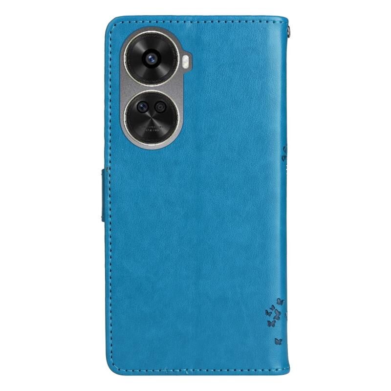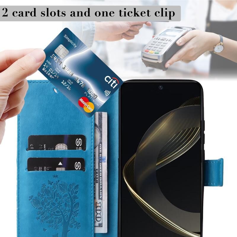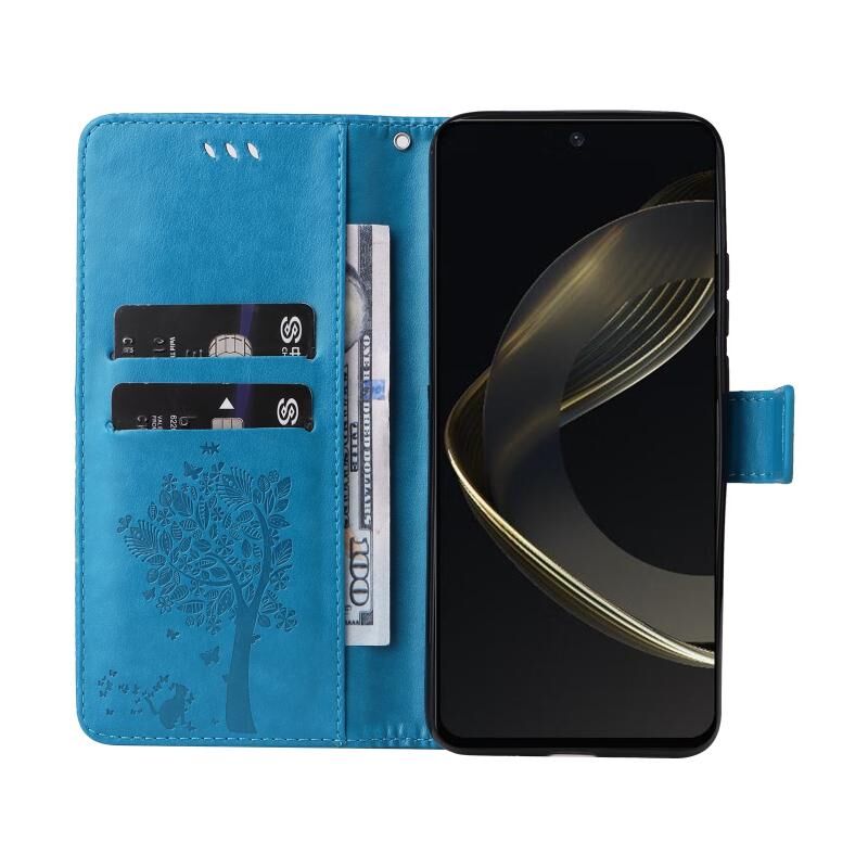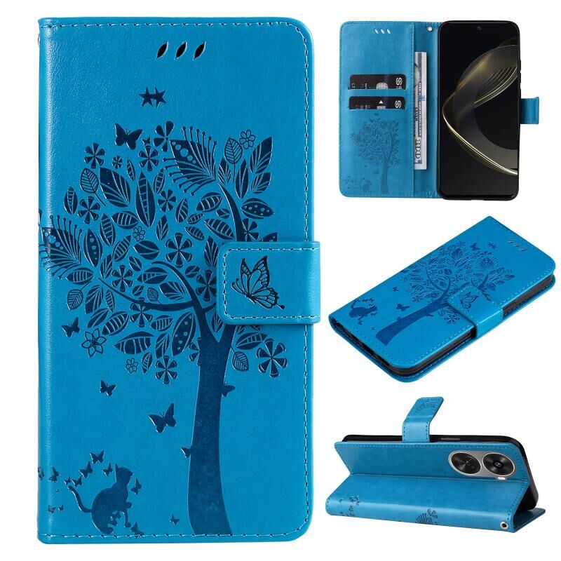 Για Huawei nova 12 SE / nova 11 SE Tree & Cat ανάγλυφο μοτίβο Flip δερμάτινη θήκη τηλεφώνου (μπλε)