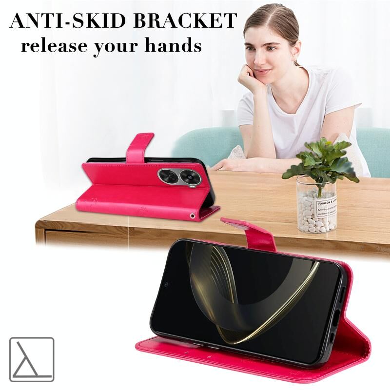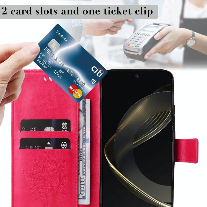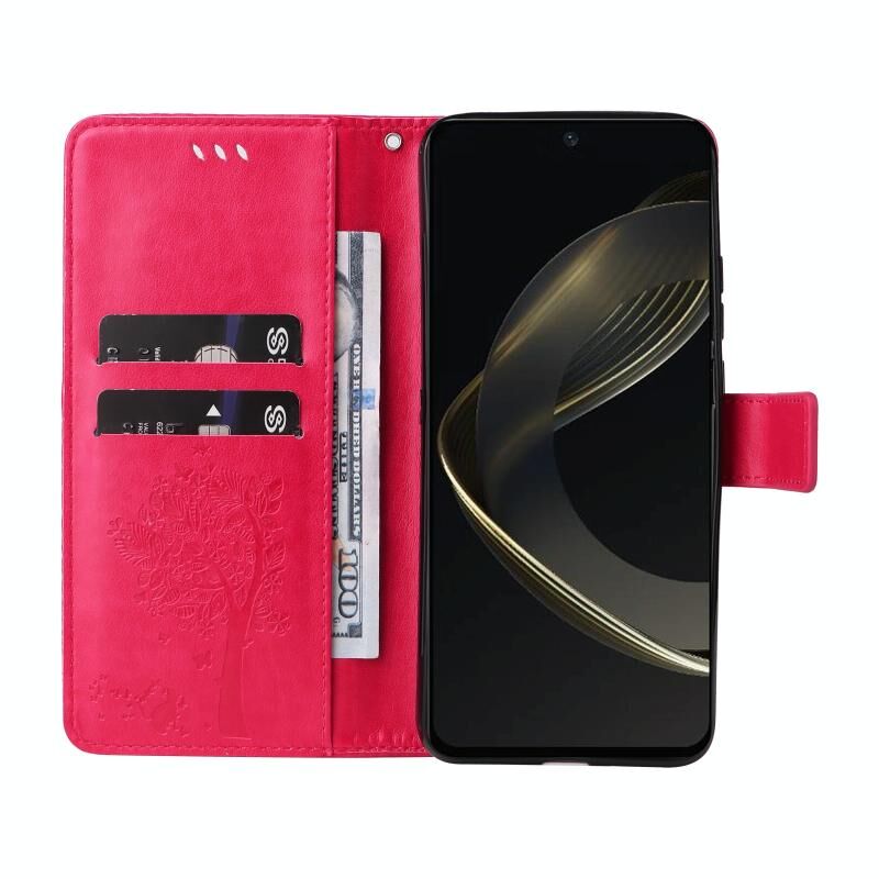 Για Huawei nova 12 SE / nova 11 SE Tree & Cat ανάγλυφο μοτίβο Flip δερμάτινη θήκη τηλεφώνου (Rose Red)