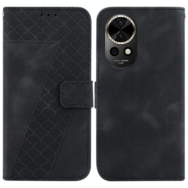 Για Huawei nova 12 Επτά-σχήμα ανάγλυφη δερμάτινη θήκη τηλεφώνου (Μαύρο)