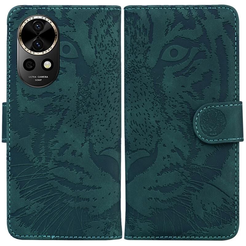Θήκη τηλεφώνου Huawei nova 12 με ανάγλυφο σχέδιο τίγρης, δερμάτινη, τύπου flip (Μαύρο)
