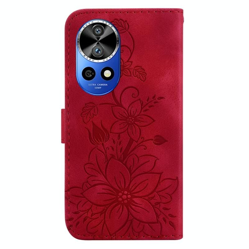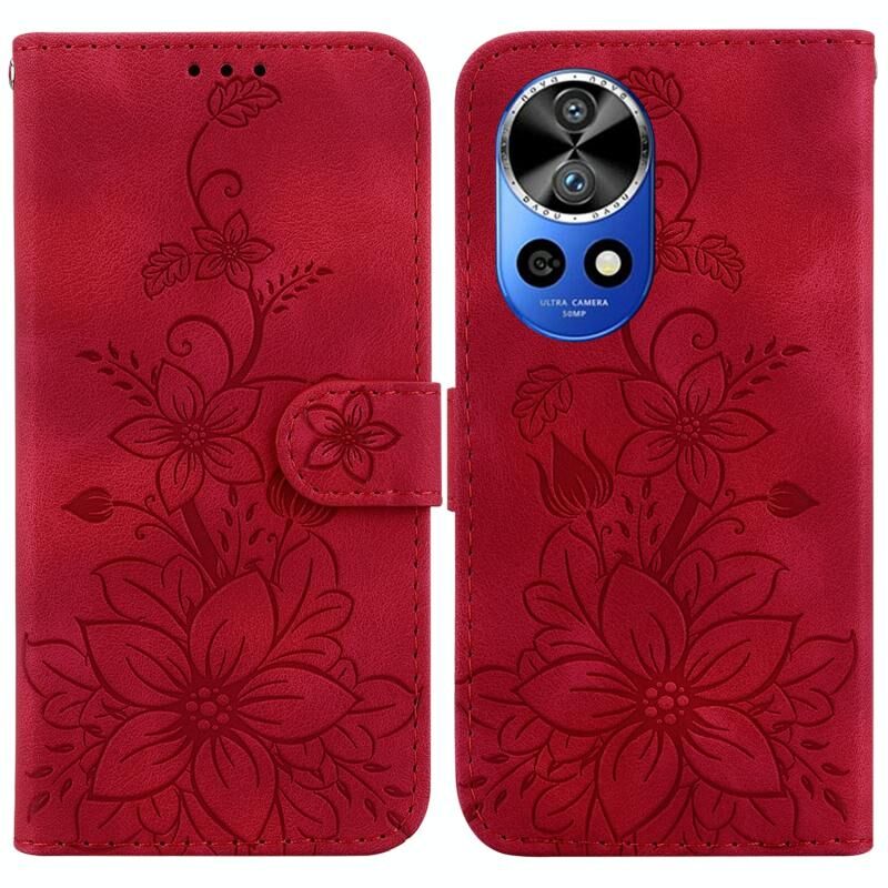 Για Huawei nova 12 Ultra Lily ανάγλυφη δερμάτινη θήκη τηλεφώνου (κόκκινο)