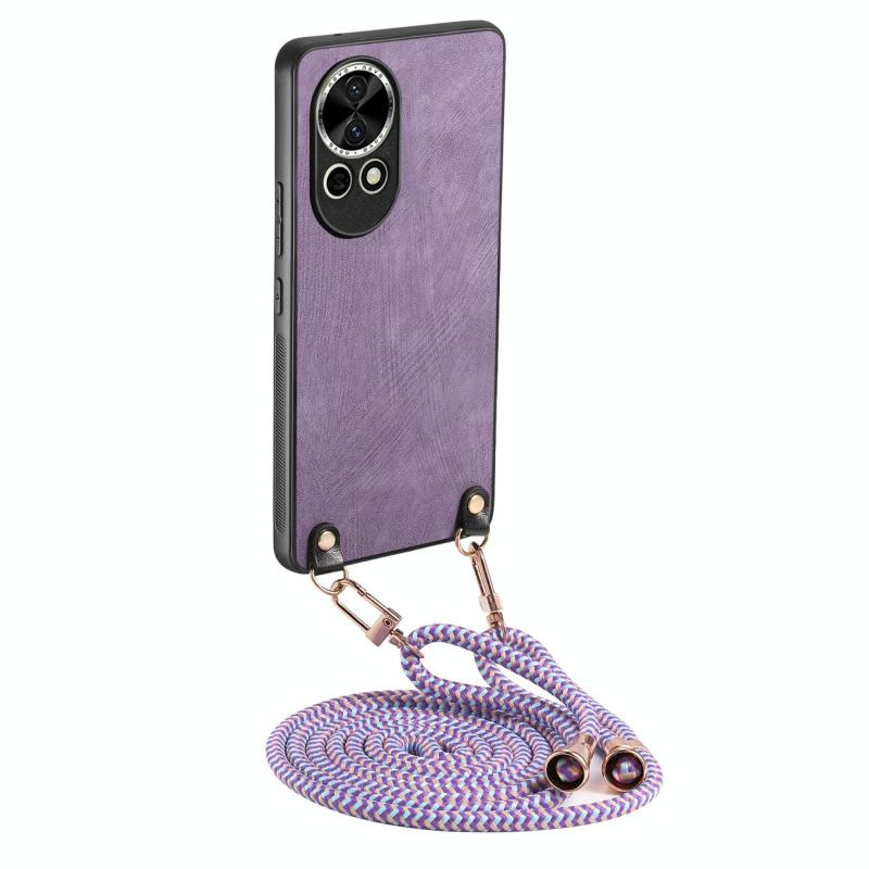 For Huawei nova 12 Vintage Leather PC Back Cover Phone Case with Crossbody Strap(Purple)