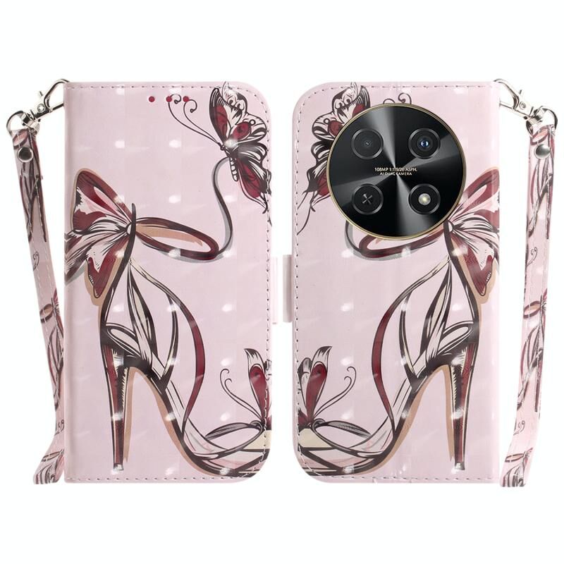 Θήκη τηλεφώνου δερμάτινη, οριζόντια, αναδιπλούμενη, 3D πολύχρωμη για Huawei nova 12i 4G Global (Πεταλούδα με ψηλοτάκουνα)
