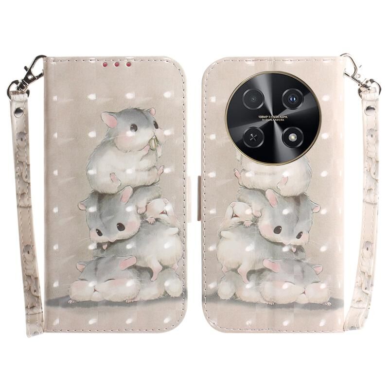 Θήκη τηλεφώνου δερμάτινη, οριζόντια, αναδιπλούμενη, 3D με σχέδια (σκίουροι) για Huawei nova 12i 4G Global.