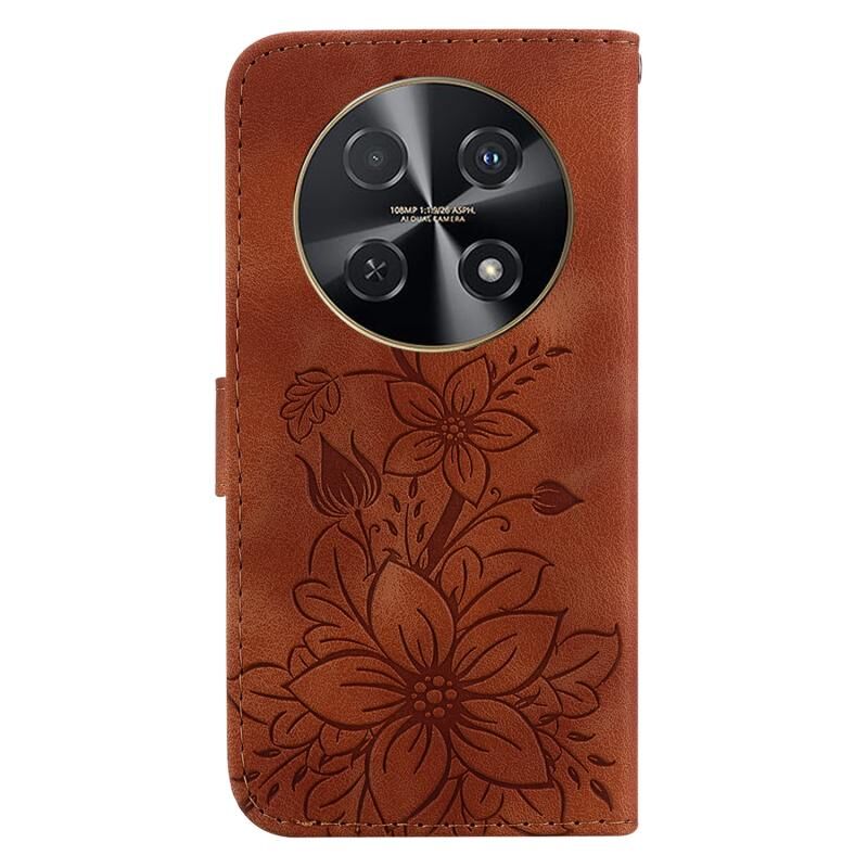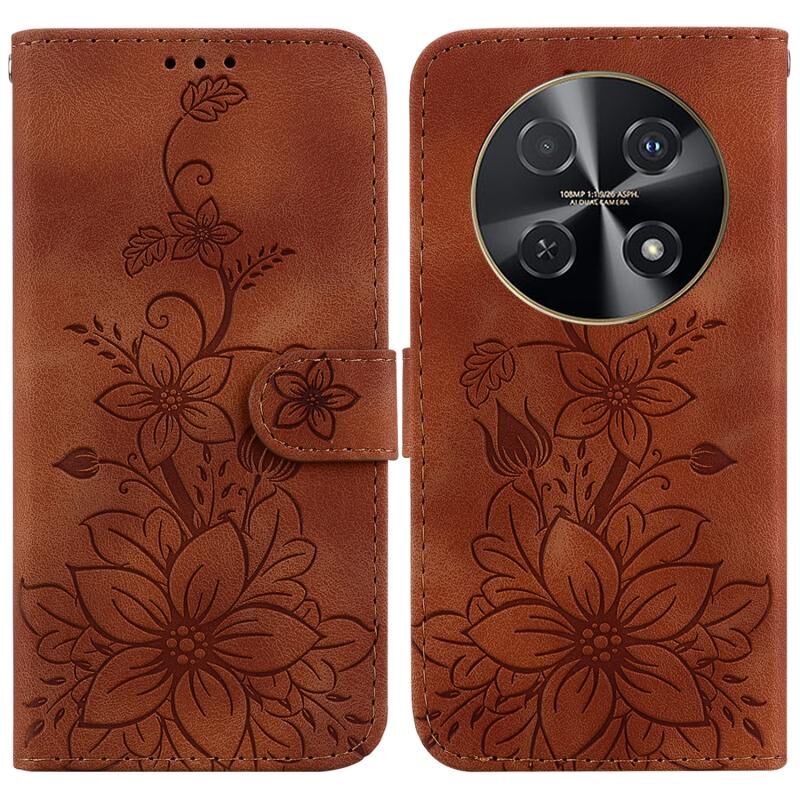 Για Huawei nova 12i 4G Παγκόσμια Lily ανάγλυφη δερμάτινη θήκη τηλεφώνου (καφέ)