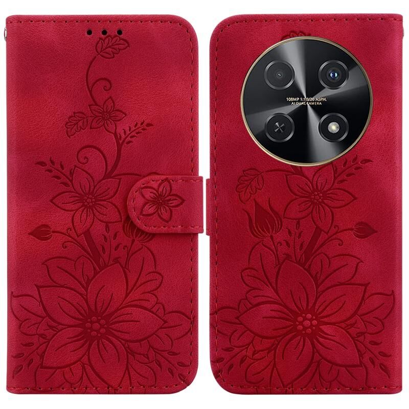 Για Huawei nova 12i 4G Παγκόσμια Lily ανάγλυφη δερμάτινη θήκη τηλεφώνου (κόκκινο)