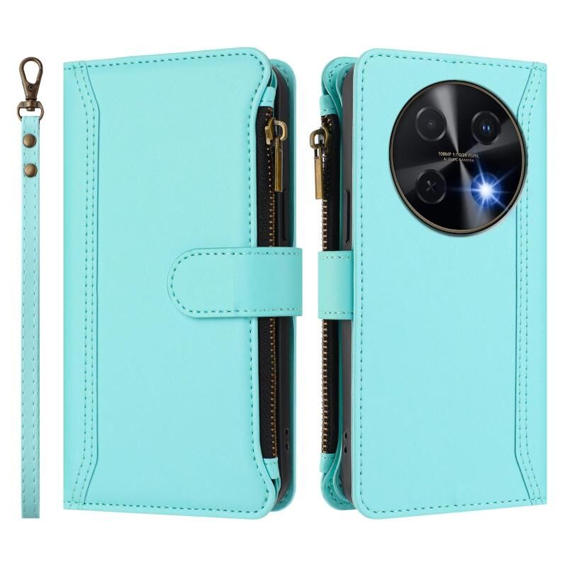 For Huawei nova 12i 4G Global Magnetic Closure 9 Card Slots Zipper Leather Case with Hand Strap(Mint Green)