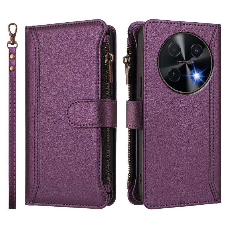 For Huawei nova 12i 4G Global Magnetic Closure 9 Card Slots Zipper Leather Case with Hand Strap(Purple)