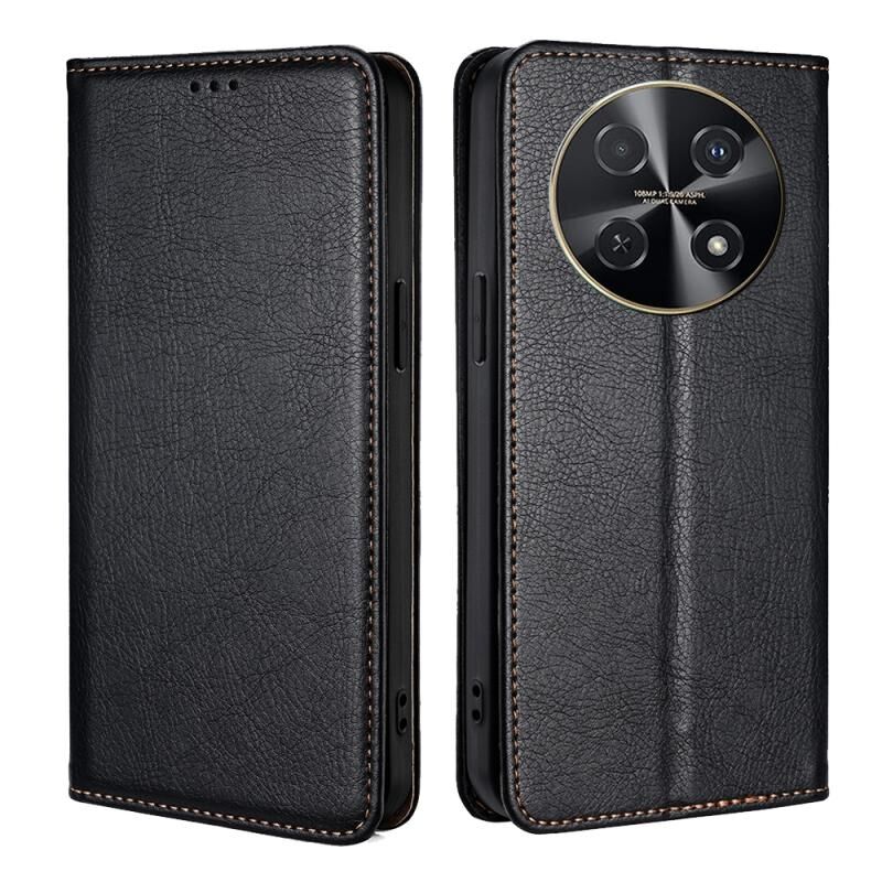 Για Huawei nova 12i 4G Gloss Oil Solid Color Μαγνητική δερμάτινη θήκη τηλεφώνου (μαύρο)