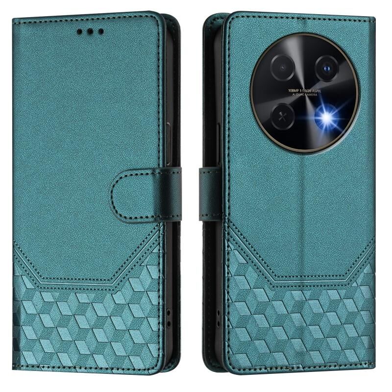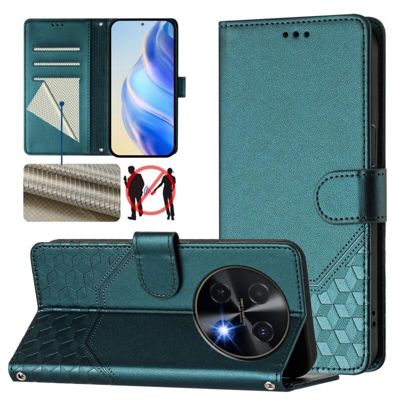 Για Huawei nova 12i 4G κηρήθρα ανάγλυφο RFID δερμάτινη θήκη τηλεφώνου (Πράσινο παγωνιού)