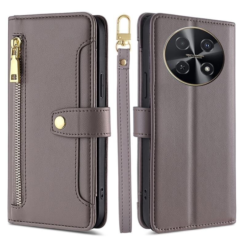 Για Huawei nova 12i 4G Sheep Texture Cross-body φερμουάρ πορτοφόλι δερμάτινη θήκη τηλεφώνου (Γκρι)